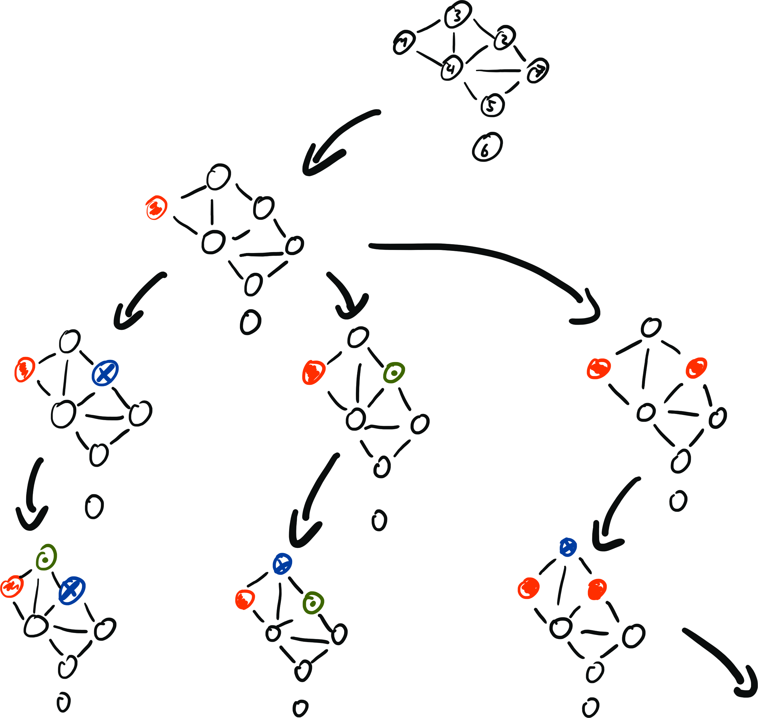 Forward checking: Nachdem wir $X_i$ zuweisen, stellen wir arc concistency von $X_j$ zu $X_i$ für alle Nachbarn $X_j$ her.