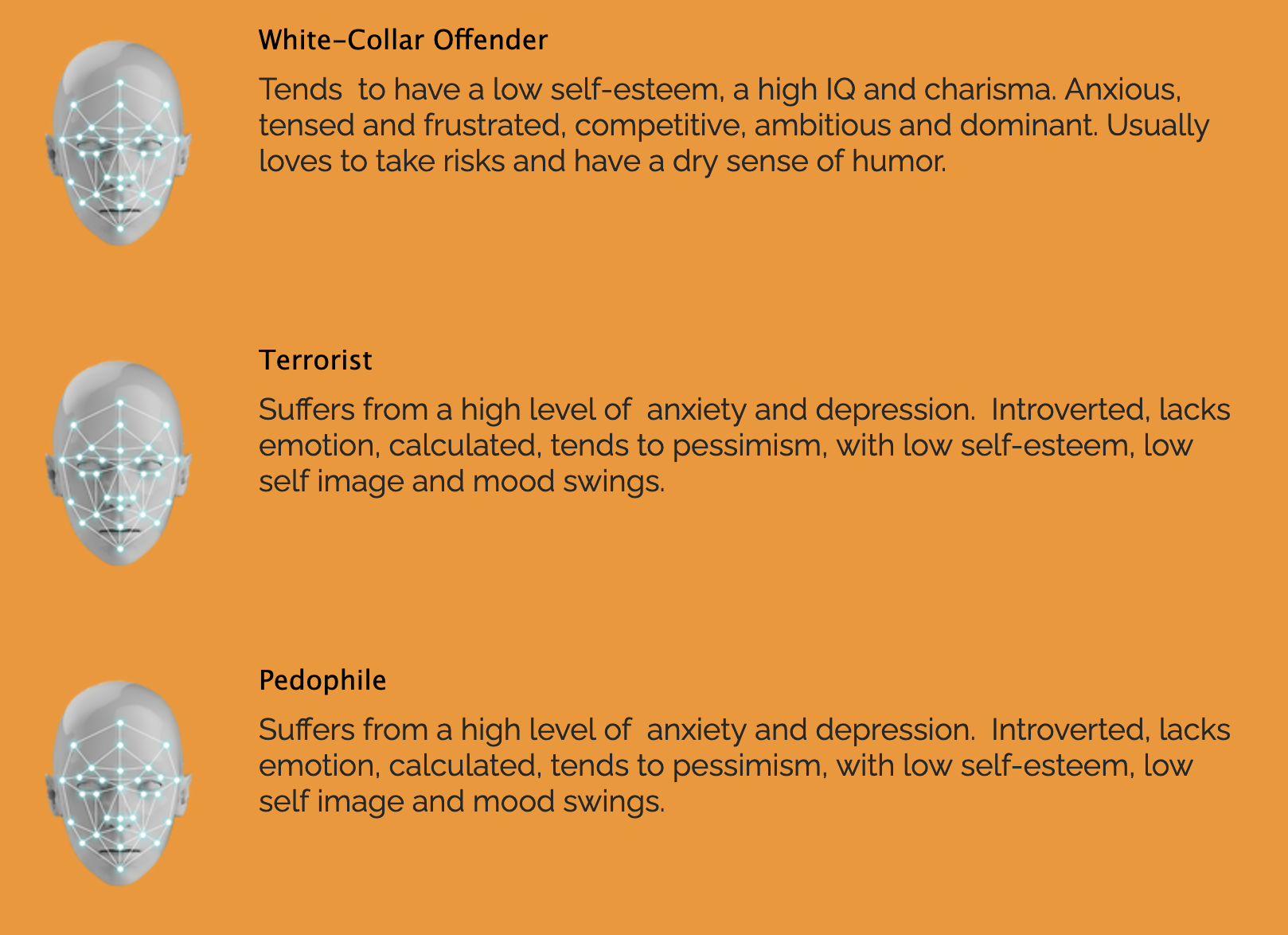 Beispiel: Vorhersage von diversen Charakteristika aus Porträt Bildern (Startup Faception)