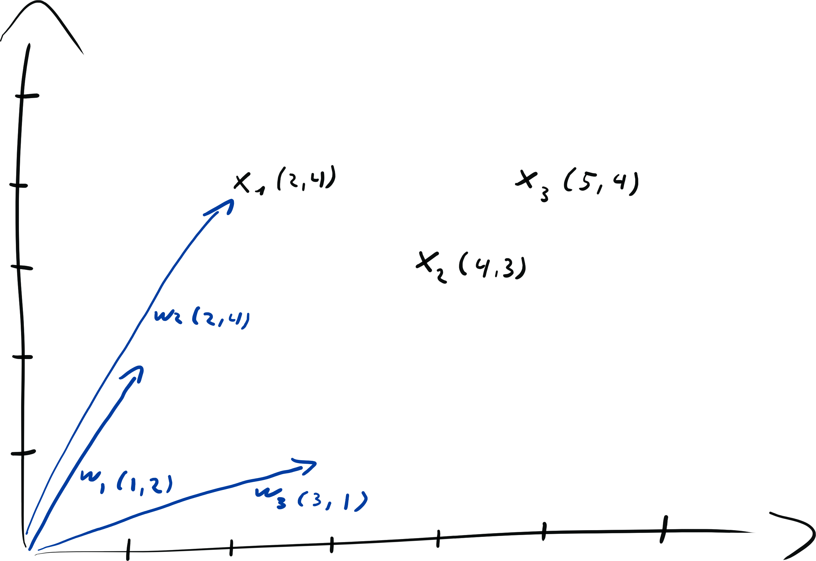 | $x_2 = [4,3]$ | $w_2 = [2,4]$ |